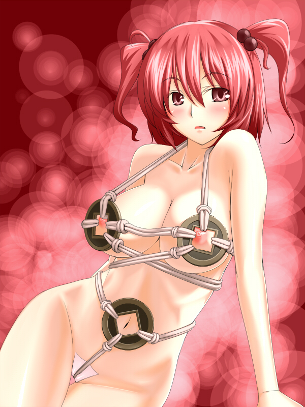 shuu (syuuuuuuuuuu), ryuuguu rena, higurashi no naku koro ni, commentary request, 1girl, :d, bow, bowtie, breasts, fire, hat, looking at viewer, medium breasts, medium hair, open mouth, orange hair, outdoors, parted bangs, pink bow, pink bowtie, shirt, short sleeves, smile, solo, upper body, white hat, white shirt, yellow eyes