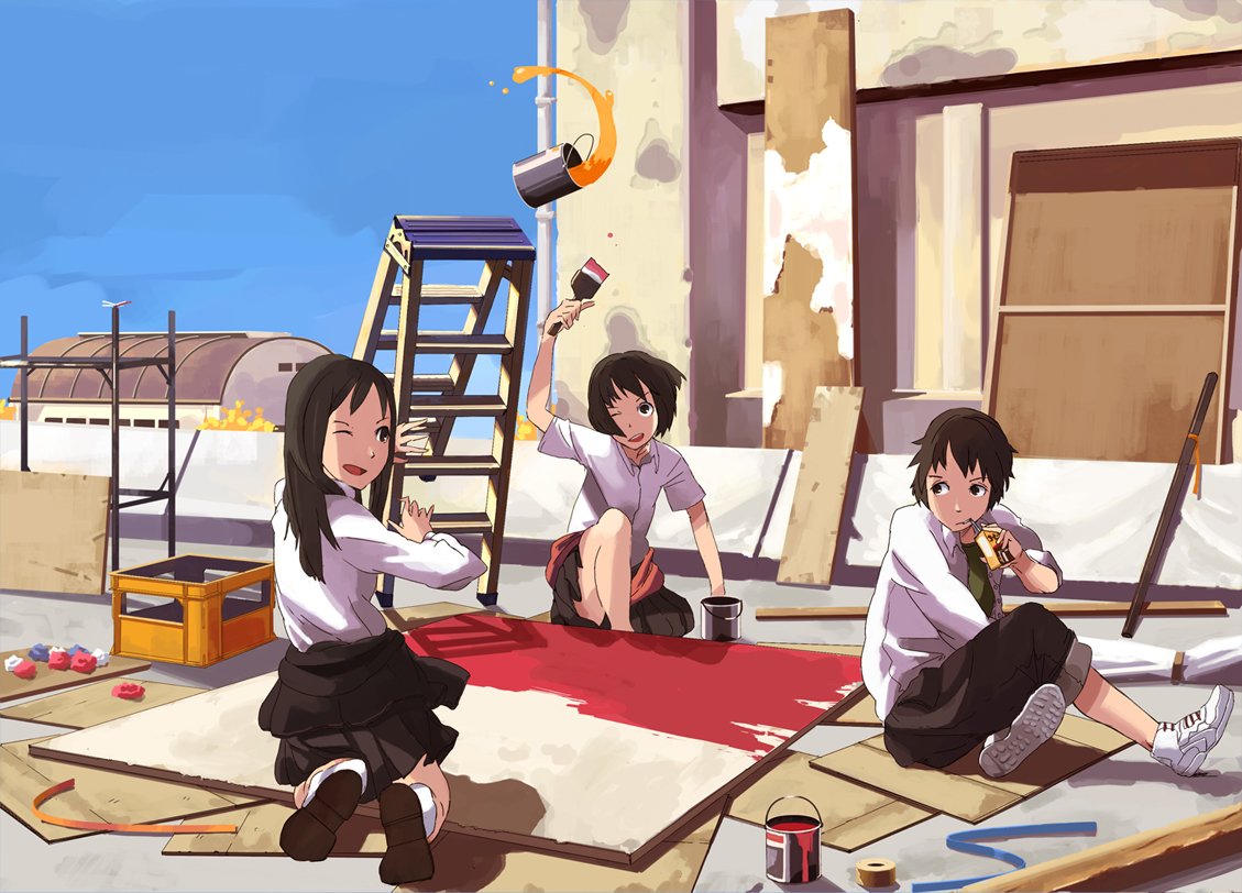 teketeke (tasutekete), mochizuki ryouji, yuuki makoto (persona 3), persona, persona 3, highres, 2boys, antenna hair, black jacket, blue eyes, closed mouth, collared shirt, heart, hug, jacket, looking at viewer, male focus, multiple boys, profile, scarf, shirt, short hair, simple background, sweat, white background, white shirt, yaoi, yellow scarf