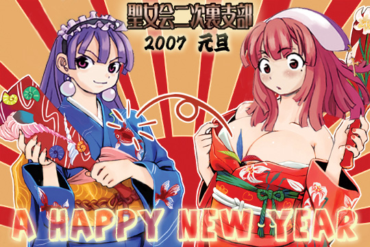 00s20072girlsbreastscleavagehuge breastsjapanese clotheskimonomultiple girlspurple hairred hair