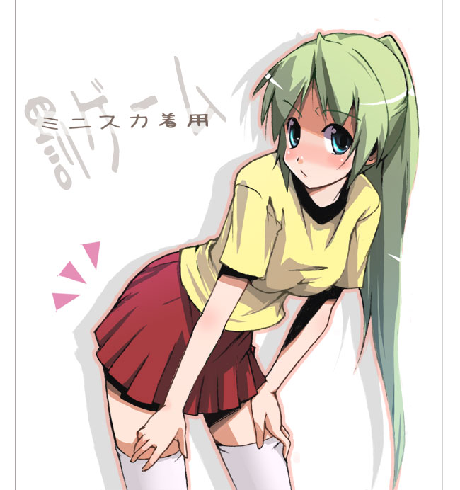 plus9, vivio, lyrical nanoha, mahou shoujo lyrical nanoha, mahou shoujo lyrical nanoha strikers, bad id, bad pixiv id, 00s, ahoge, blonde hair, hair ribbon, heterochromia, legs, panties, pantyshot, ribbon, solo, striped clothes, striped panties, twintails, two side up, underwear, upskirt
