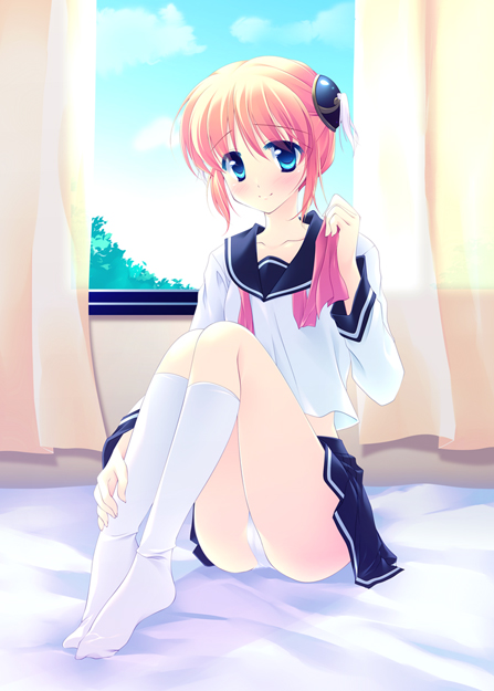 00sblue eyesbun coverdouble bunfeethair bunkneehighsorange hairpantiespantyshotschool uniformserafukushort hairsittingsockssolounderwearwhite panties