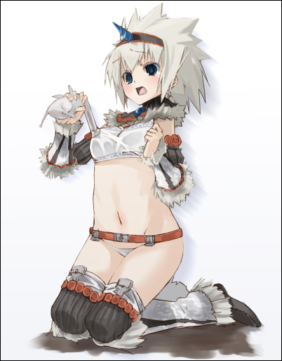 1girlbeltblue eyesbrabreast suckingbreast sucking through clothesbreastsdetached sleevesfemale focushairbandhornskirin (armor)kneelinglingerielowleglowleg pantiesmidriffopen mouthpantiesshort hairsingle hornsolospiked hairtearsthighhighsturtleneckunderwearwhite panties