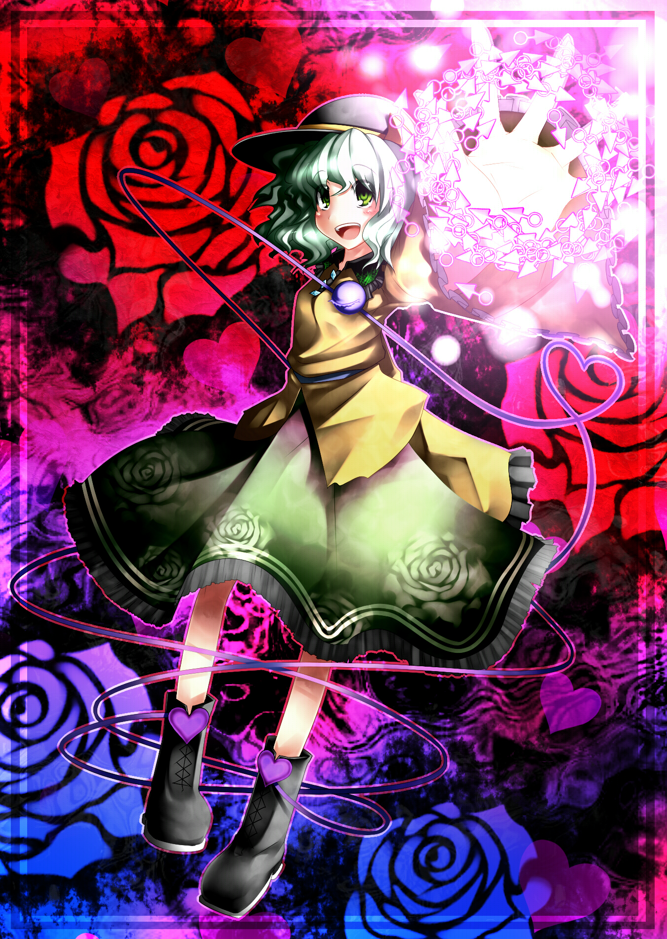 1girlblue flowerblue rosedanmakufemale focusflowerfull bodygreen eyeshatheartplantribbonroseshort hairskirtsolo