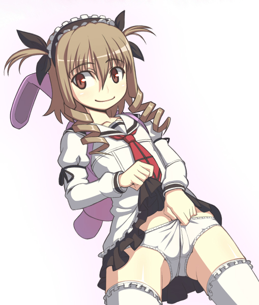 00sbrown eyesbrown hairclothes liftdrill hairlolipantiesskirtskirt liftsolothighhighsunderwear