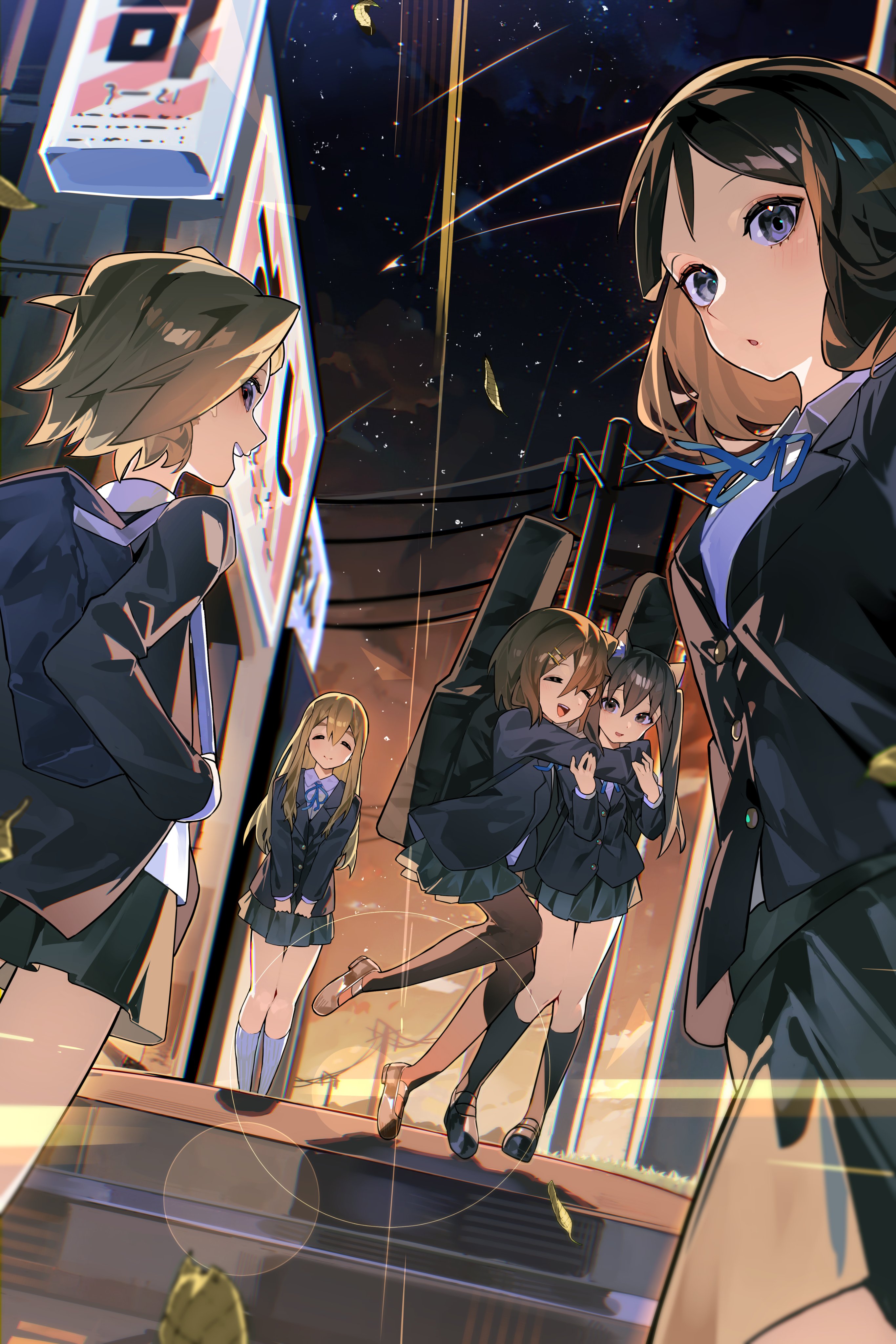 :d1boy4girlsanimal earsbackbagblack eyesblack hairblack pantyhoseblack socksblazerblonde hairblue bagblue eyesblue ribbonbrown hairbuildingcat earscityclosed eyescollared shirtdutch anglefrom belowgrey skirtguitar casehair between eyeshair ornamenthaircliphands upho-kago tea timehug from sideinstrument caseinstrument case on backjacketkneehighsleg uplens flarelong hairlong sleeveslooking at viewermary janesminiskirtmorningmultiple girlsneck ribbonnightnight skyopen mouthoutdoorspantyhoseparallel hairclipspleated skirtpower linesribbonsakuragaoka high school uniformschool bagschool uniformshirtshoesshooting starshort hairskirtskysmilesocksstairsstandingstar (sky)starry skysunlightsunrisev armswhite shirtwinter uniform