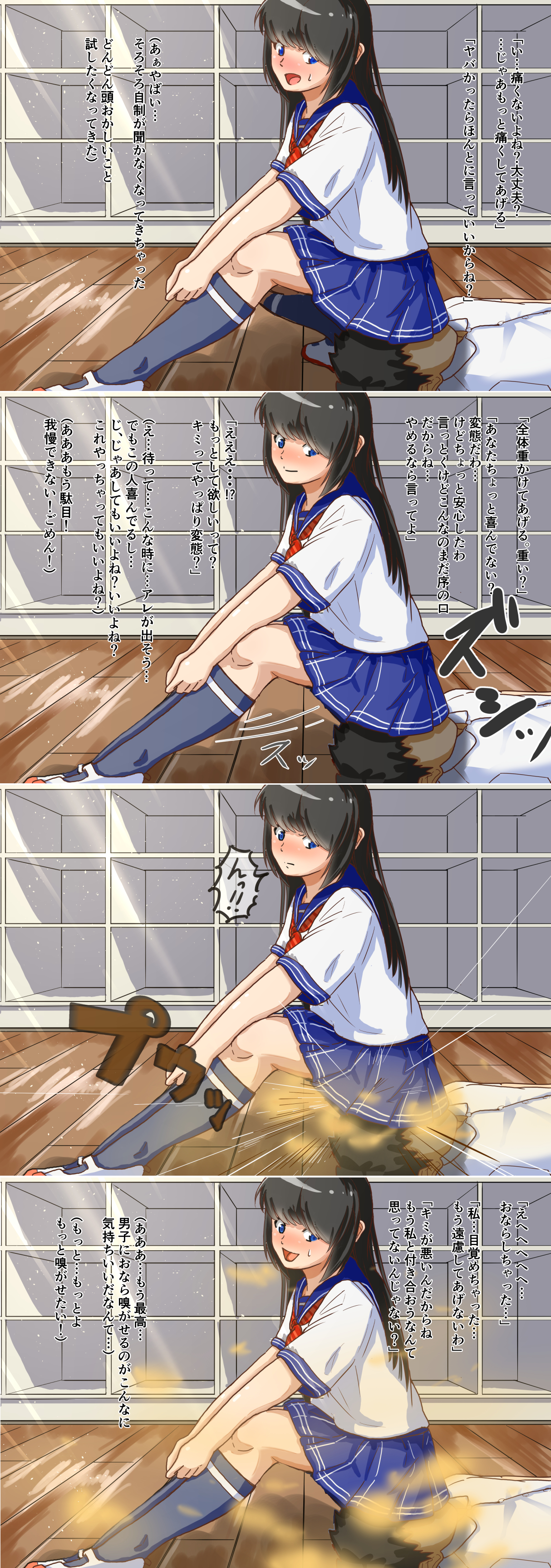 kuronezumi, hiiragi kagami, lucky star, 00s, clothes lift, panties, panty pull, school uniform, serafuku, skirt, skirt lift, solo, underwear