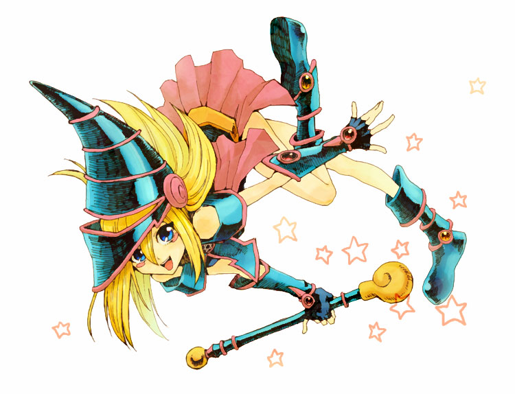 1girlarmorblonde hairblue bootsblue eyesbootsduel monsterfemale focuspentaclesmilesolostaffstar (symbol)