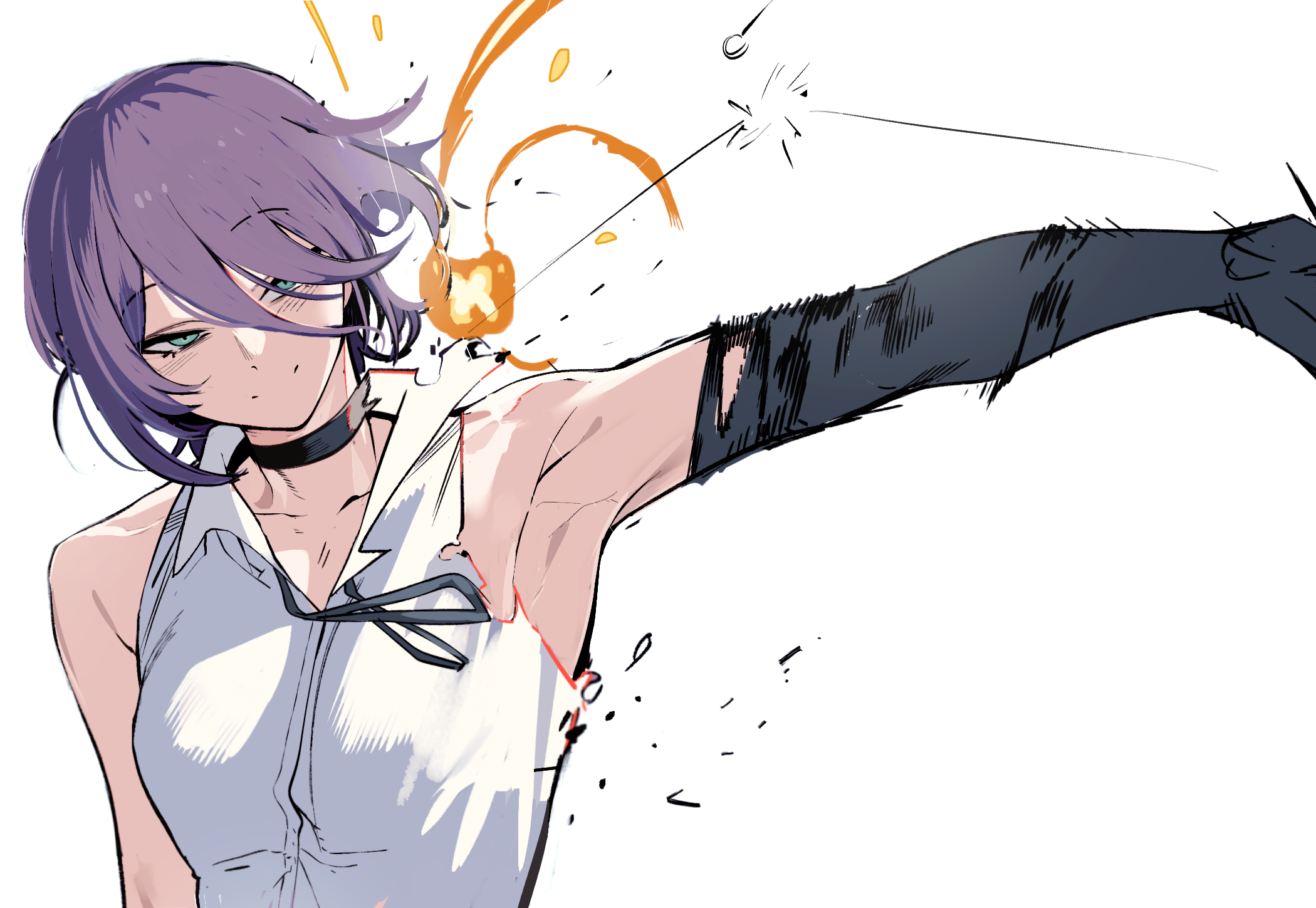 akkun teitoku, perth (kancolle), kantai collection, commentary request, highres, 1girl, blonde hair, blue neckerchief, blue skirt, braid, braided bangs, braided bun, breasts, cape, chestnut mouth, collared shirt, dress shirt, green cape, green vest, hair bun, hair ribbon, hand on own hip, looking at viewer, medium breasts, neckerchief, one-hour drawing challenge, open mouth, purple background, purple eyes, ribbon, shirt, short hair, skirt, solo, two-tone background, upper body, vest, white shirt
