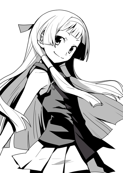 00s1girlblunt bangsfemale focusgreyscalehair tubeshairbandlong hairmonochromepleated skirtskirtsmilesolowhite skirt