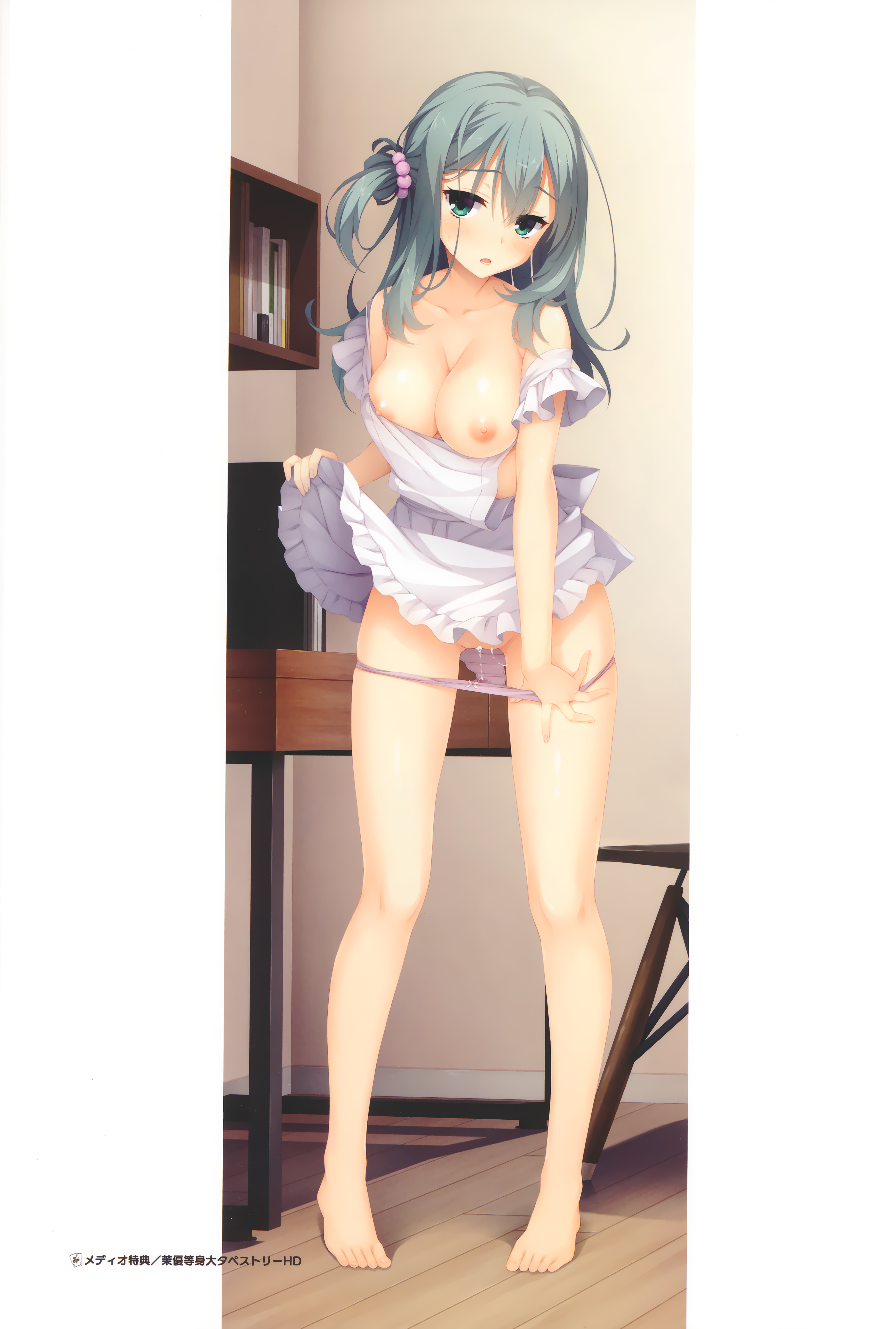 1girlapronapron liftaqua eyesaqua hairarm straparousedback bowbare shouldersbarefootbeadsbowbreastscleavageclothes liftcollarbonefeetfrilled apronfrillsfull bodyhair beadshair between eyeshair ornamentindoorslarge breastslifting own clotheslong hairlooking at viewernaked apronnipplesone side uppantiespanty pullpink pantiespulling own clothespussypussy juicepussy juice trailskindentationsolostandingthighstoesunderwearundressingwhite apronwhite bowwooden floor