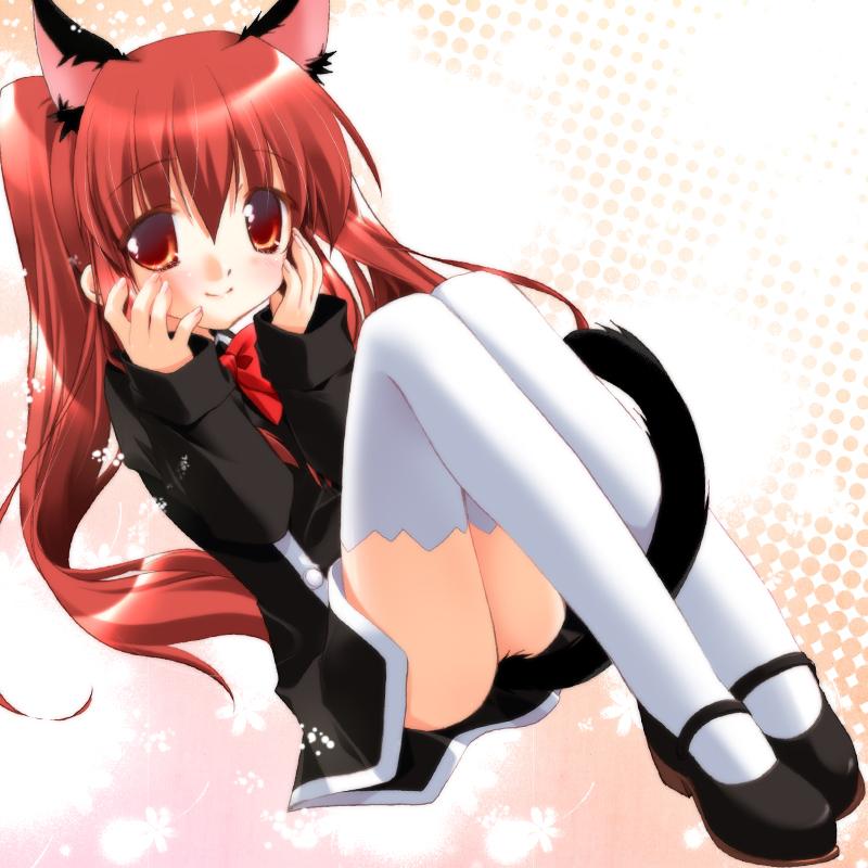 1girlanimal earsbrown haircat earscat tailfemale focuslong hairred eyesschool uniformserafukusolotailthighhighs