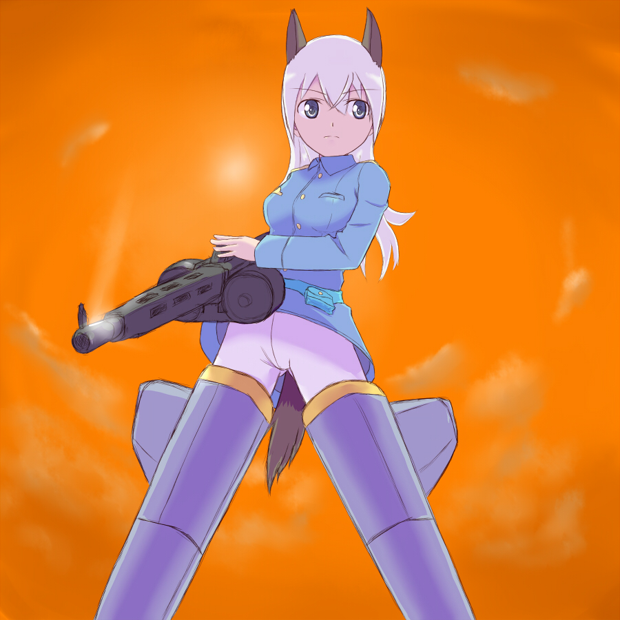 00s1girlanimal earsdouble-drum magazinedrum magazinefemale focusgunhigh-capacity magazinemachine gunmagazine (weapon)mg42pantyhoseriflesaddle-drumsolostriker unitweaponwhite pantyhose