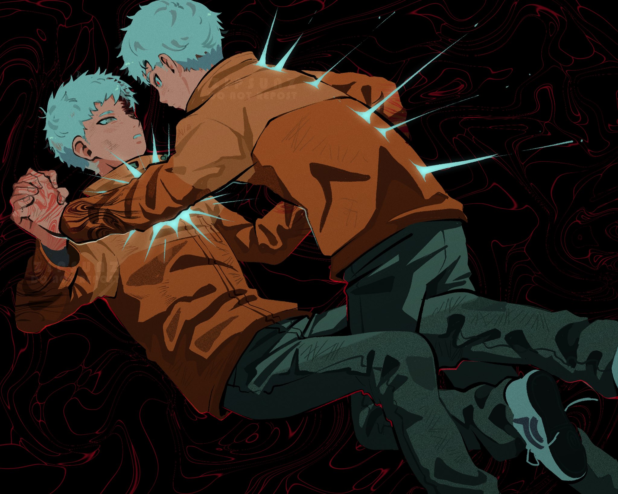 machi ojisan, czeslaw meyer, ennis, firo prochainezo, baccano!, tengen toppa gurren lagann, homunculus, bad id, bad pixiv id, 1girl, 2boys, border, child, formal clothes, glasses, lens flare, multiple boys, necktie, parody, red eyes, red hair, ship, short hair, style parody, suit, watercraft