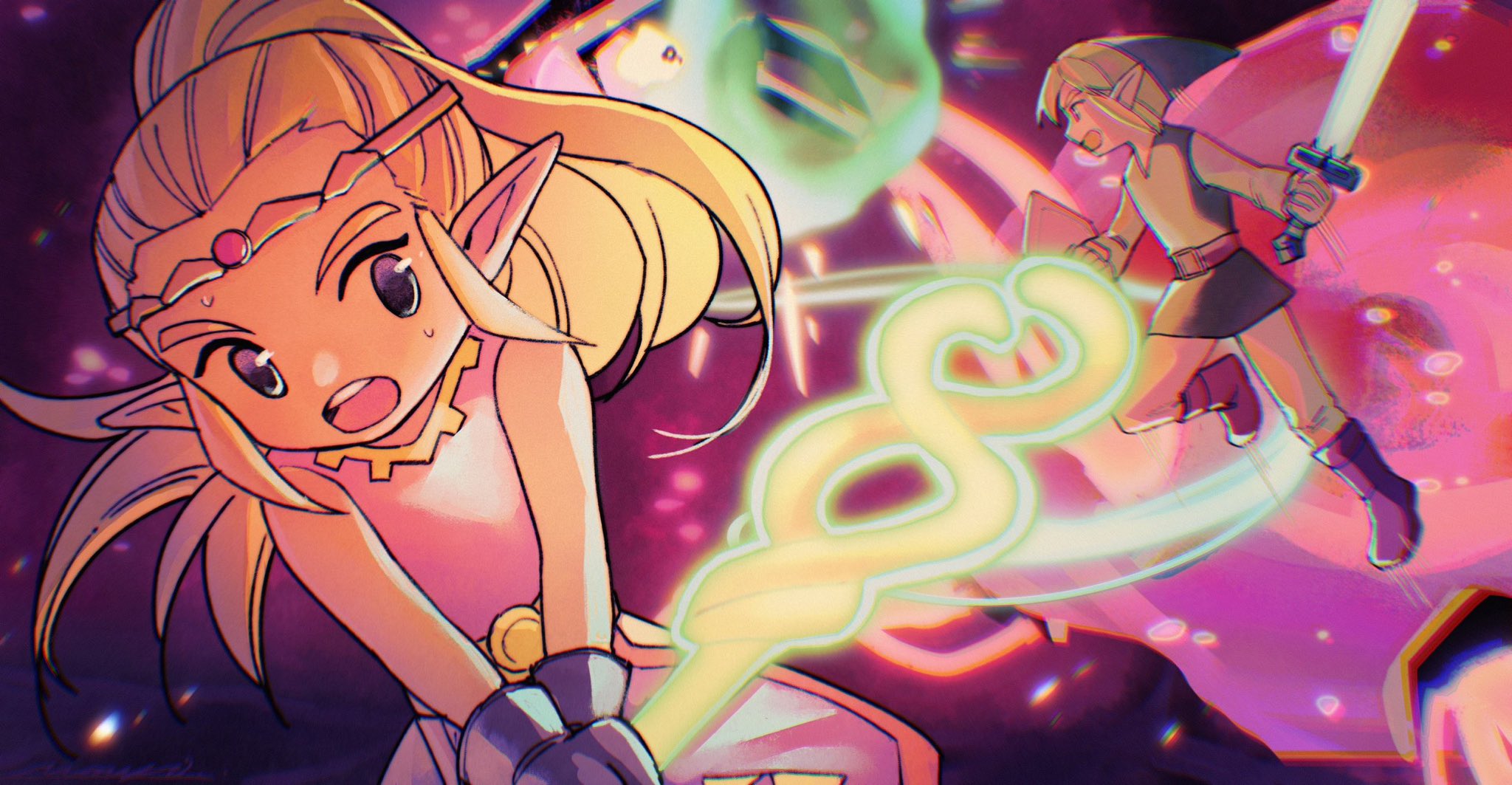 1boy1girlbare shouldersbattleblonde hairblue eyesblue glovesbootsbrown bootscircletgemglovesgold necklaceholdingholding shieldholding staffholding swordholding weaponjewelrylong hairnecklaceopen mouthpantsphrygian cappink shirtpointy earsponytailred gemstoneshieldshirtshort hairsleevelesssleeveless shirtstaffsweatdropswordtunicweaponwhite pantswhite shirt