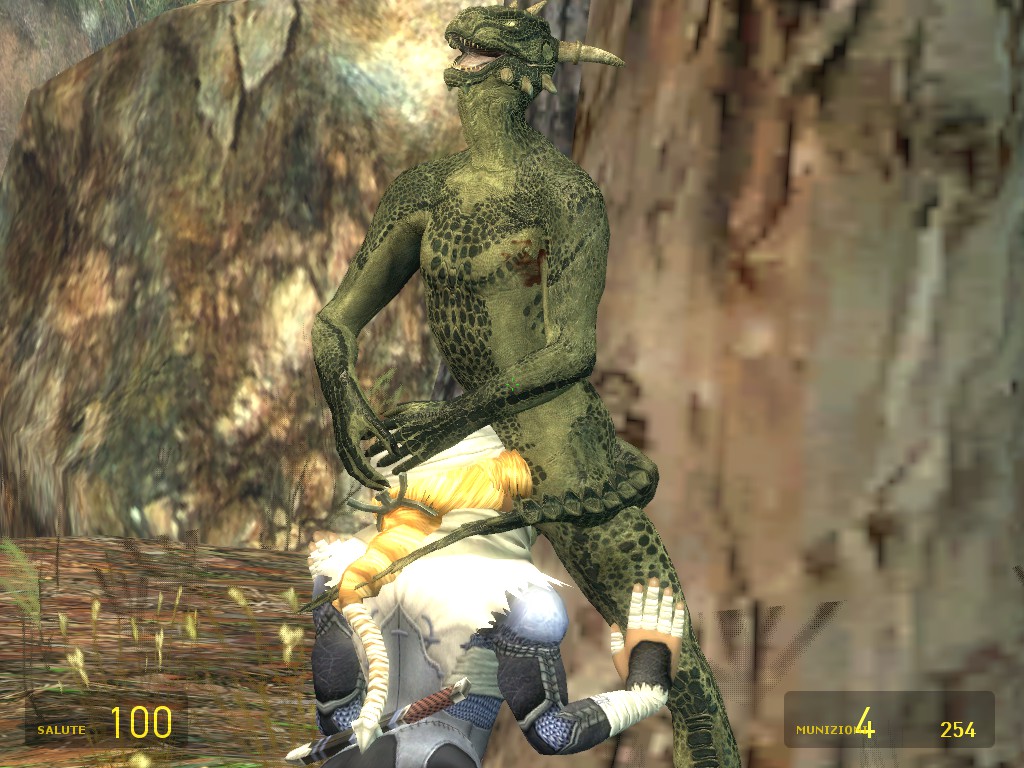 youhei kozou, phaia, spunky knight, highres, 00s, 1girl, 2003, 2boys, artist name, blush, breasts, bridal gauntlets, brown hair, closed eyes, curvy, groping, group sex, huge breasts, large areolae, long nipples, multiple boys, muscular, nipples, nude, open mouth, puffy nipples, sex, short hair, thighhighs, thighs