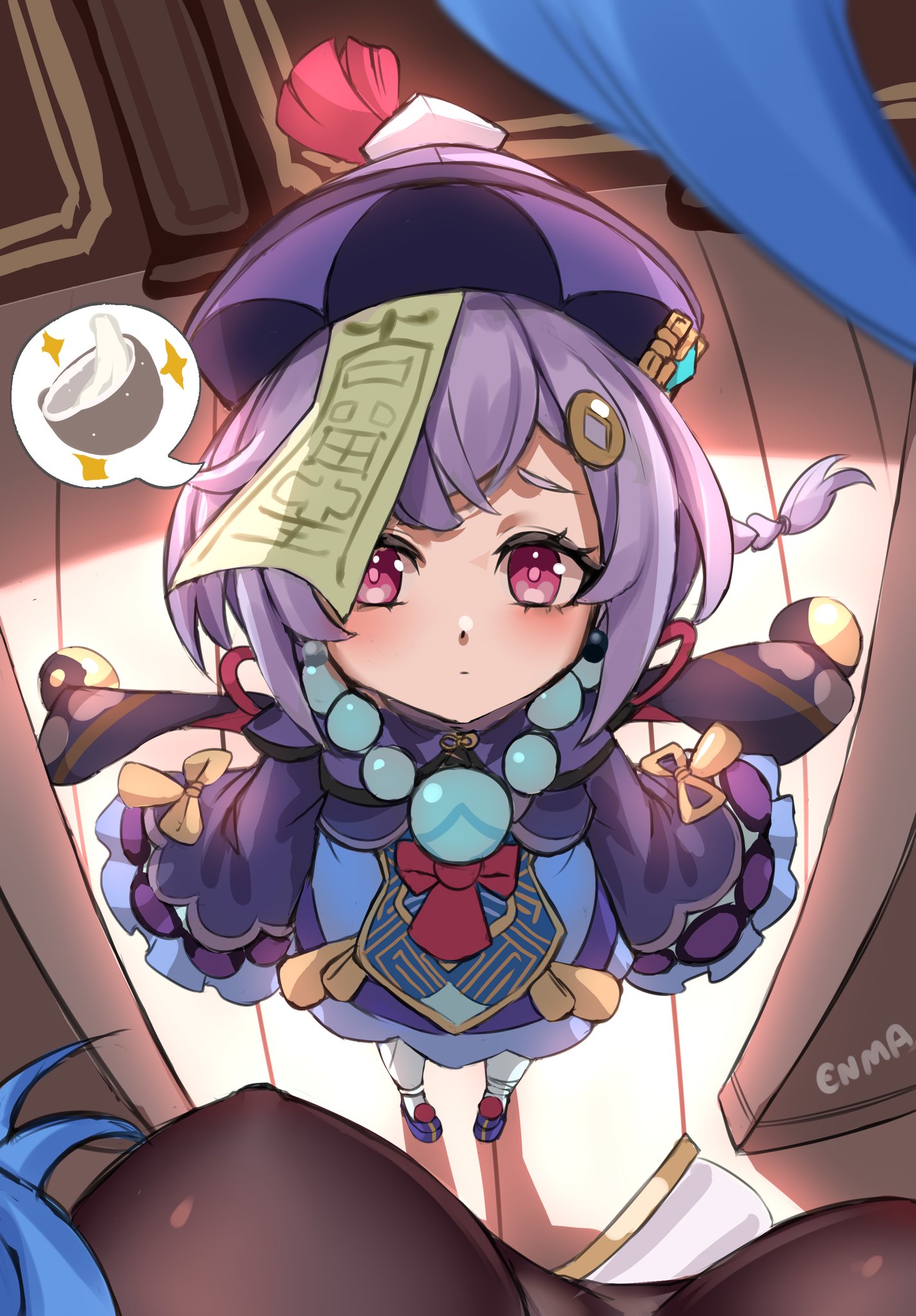 2girlsartist namebead necklacebeadsblue hairblushbowbowtiebraidbraided ponytailbreastschina dresschinese clothesclosed mouthcoconut cupdot nosedressearringseyelashesfemale povfrom abovehatimage in speech bubbleindoorsjewelryjiangshilarge breastslong hairlong sleeveslooking at viewermilkmultiple girlsnecklaceofudaofuda on headpovpov breastspurple bowpurple bowtiepurple dresspurple eyespurple hairpurple hatpurple shoesqingdai guanmaoribbonshadowshoessolo focussparklespeech bubbletasselthighhighsvery long hairvision (genshin impact)waist capewhite thighhighswide sleeveswooden flooryellow ribbon