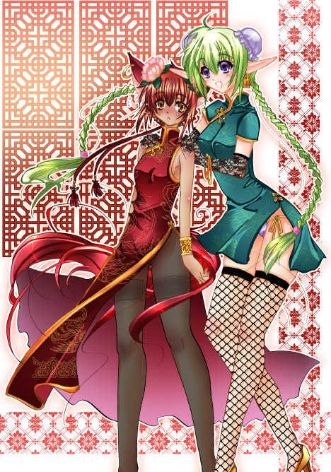 2girlsanimal earsbraidchina dresschinese clothesdresselbow glovesfishnetsgloveslacelegsmultiple girlspantiespantyhosepointy earsside-tie pantiesthighhighstwin braidsunderwear