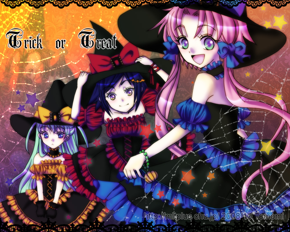 00s1boy3girlsalternate costumecostumehalloweenhatmultiple girlsribbontrick or treatwatermarkweb addresswitchwitch hat
