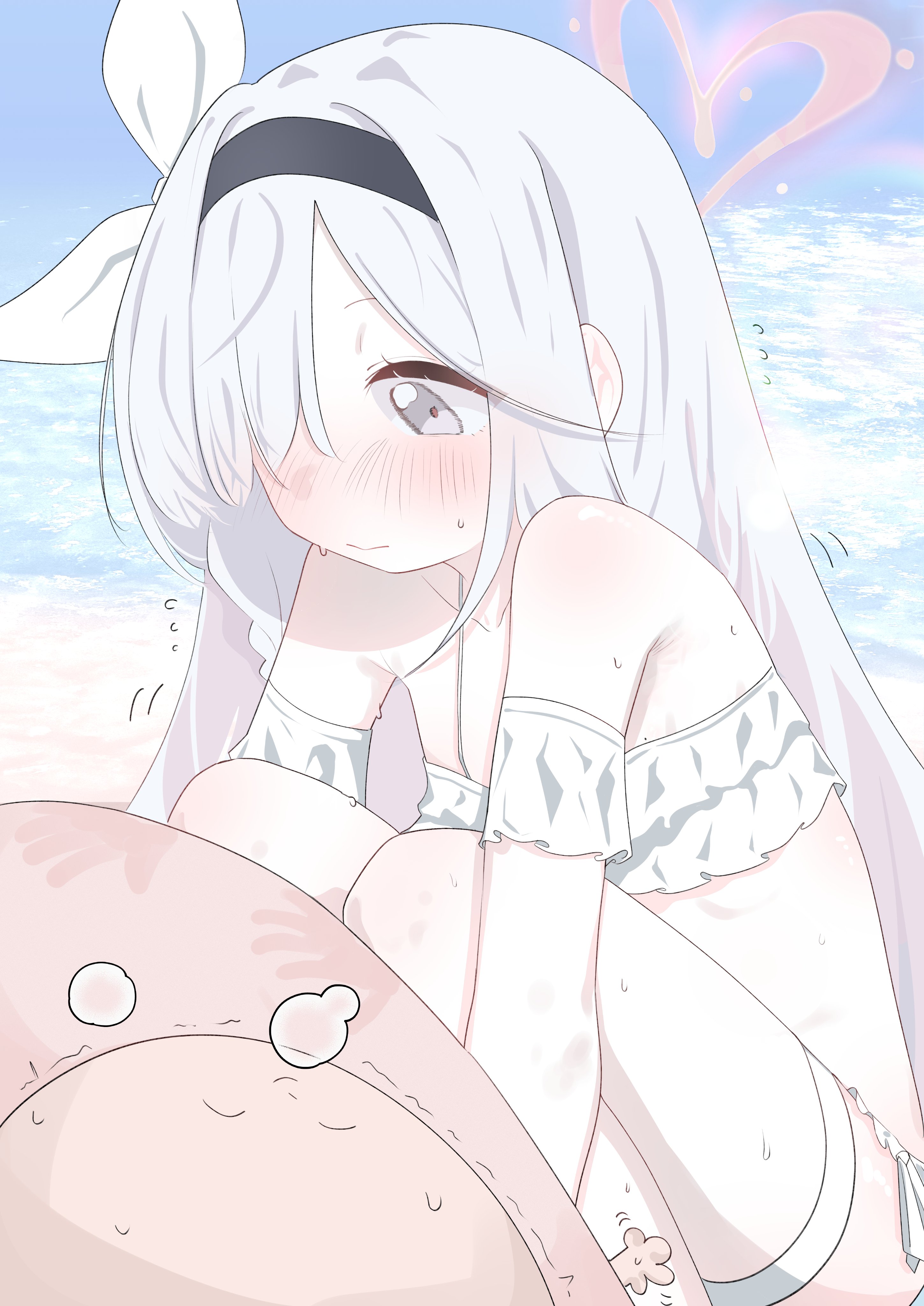 carnelian, futaba riko, touka gettan, game cg, 00s, 1girl, ass, bikini, blonde hair, braid, breast press, breasts, censored, cleavage, cum, cum on body, facial, green eyes, large breasts, long hair, mosaic censoring, nipples, paizuri, penis, pov, puffy nipples, smile, solo focus, swimsuit, twin braids, water