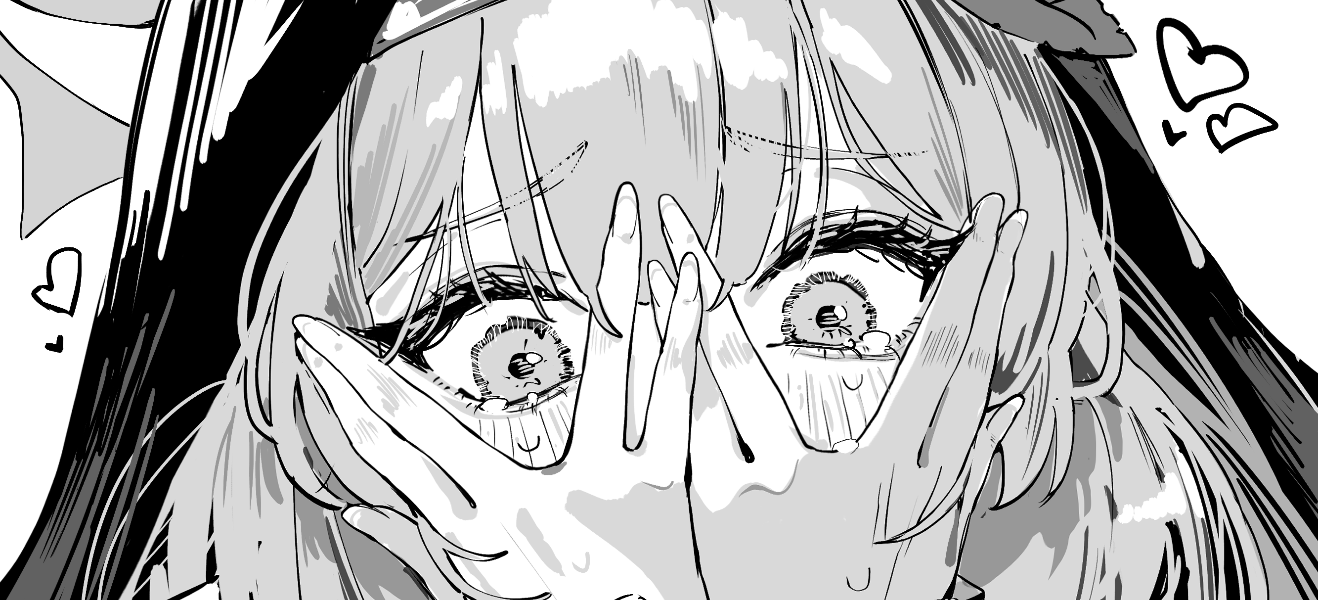 1girlblushclose-upcovering facegreyscalehands on own faceheartmonochromepeeking through fingerssimple backgroundsoloveilwhite background
