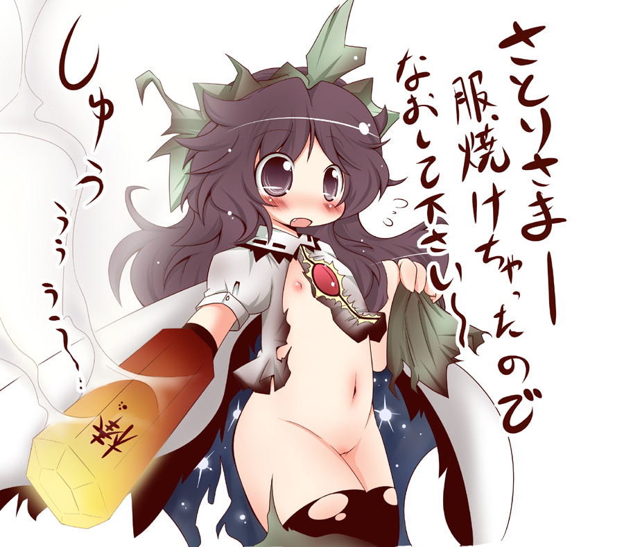 kurame, kusari hime: euthanasia, 1girl, animal ears, blood, bow, cat ears, female focus, japanese clothes, kimono, nipples, own hands together, simple background, solo, white background