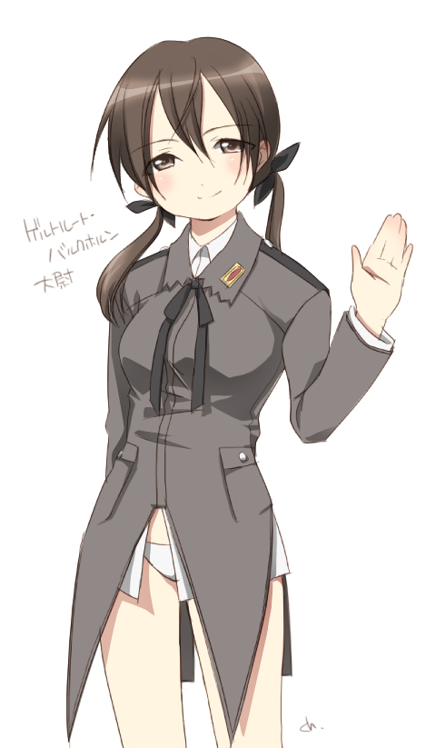 kiriu, koakuma, embodiment of scarlet devil, touhou, lowres, 1girl, blouse, character name, collared shirt, female focus, head wings, oekaki, pointy ears, ringed eyes, shirt, solo, standing, white shirt, wings