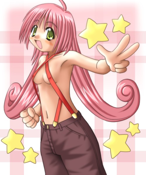 :d1girlarmpitsblushbreastscovered erect nipplescurly hairfemale focusgreen eyeslong hairlooking at viewernaked suspendersnavelopen mouthpantspink backgroundpink hairrevealing clothessmall breastssmilesolostar (symbol)suspenderstopless femaleunderboobv