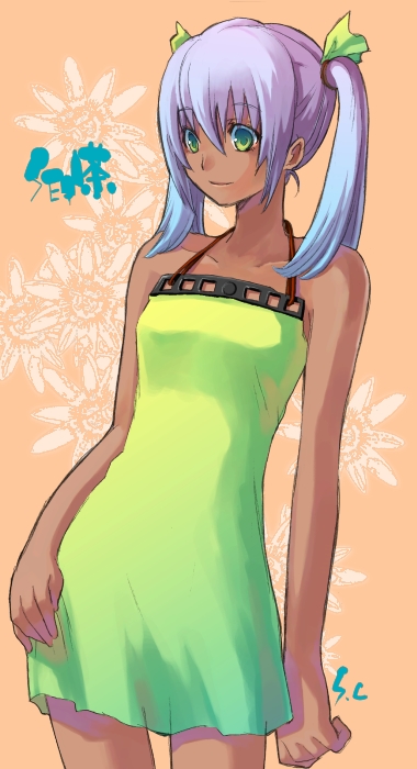 enni, nia (blade) (xenoblade), nia (xenoblade), xenoblade chronicles (series), xenoblade chronicles 2, absurdres, highres, 1girl, animal ears, chest jewel, core crystal (xenoblade), facial mark, grey hair, hands on own chest, low twintails, twintails, yellow eyes