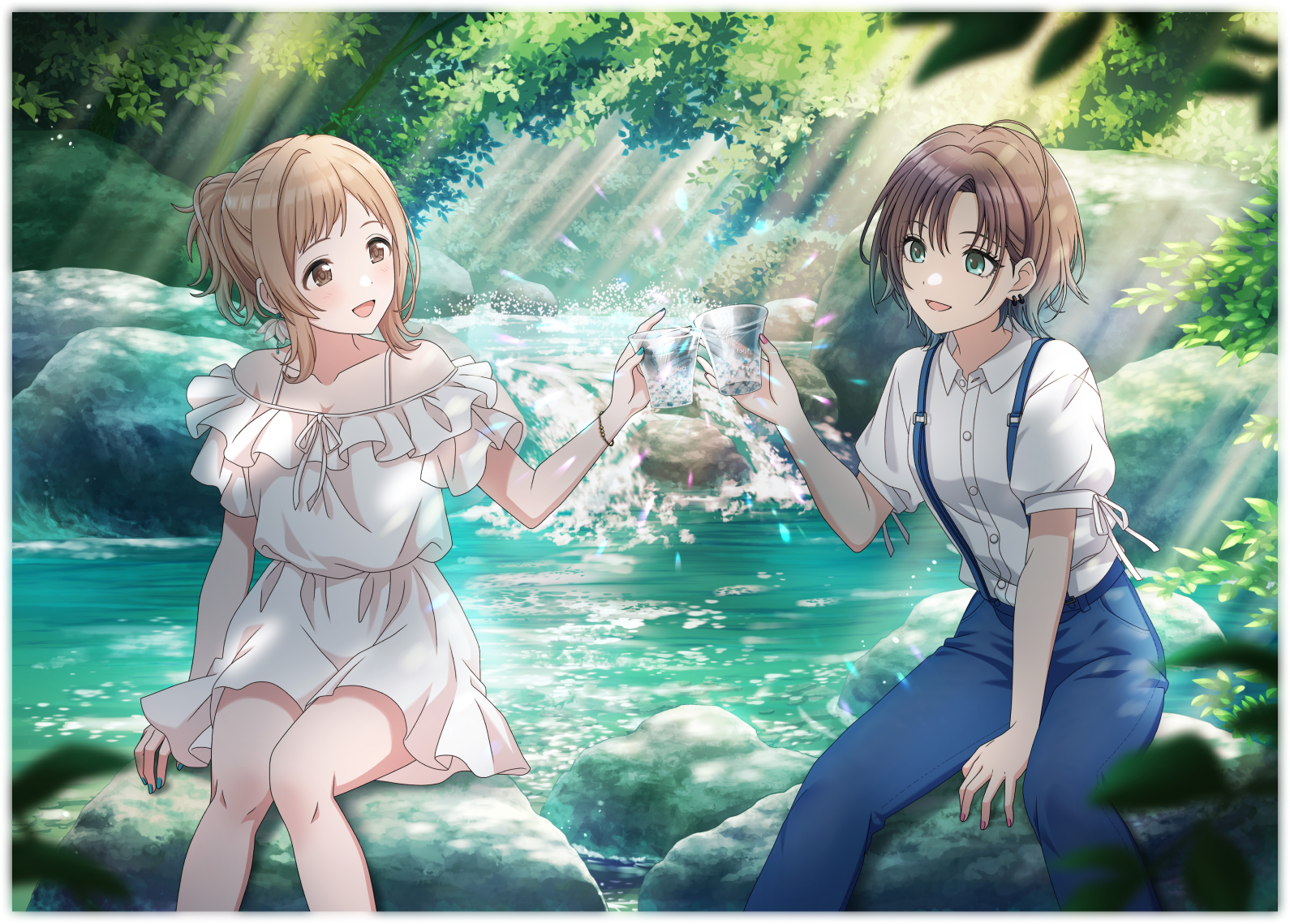 murangee, sirius symboli (umamusume), symboli kris s (umamusume), symboli rudolf (emperor's path) (umamusume), symboli rudolf (umamusume), umamusume, absurdres, highres, 3girls, aiguillette, animal ears, ascot, black choker, black gloves, black hair, black thighhighs, blue eyes, breasts, brown hair, buttons, cape, chair, choker, cleavage, closed mouth, crop top, dark-skinned female, dark skin, double-breasted, ear ornament, earrings, epaulettes, fingerless gloves, gloves, green jacket, green pants, green shorts, green skirt, hair between eyes, horse ears, horse girl, horse tail, indoors, jacket, jewelry, large breasts, long hair, long sleeves, looking at viewer, medal, multicolored hair, multiple girls, on chair, open clothes, open jacket, pants, parted lips, pendant choker, ponytail, purple eyes, red cape, red eyes, shirt, shoes, shorts, side cape, single earring, single epaulette, sitting, skirt, smile, streaked hair, symboli kris s (onyx soldier) (umamusume), tail, thigh strap, thighhighs, very long hair, white ascot, white gloves, white hair, window