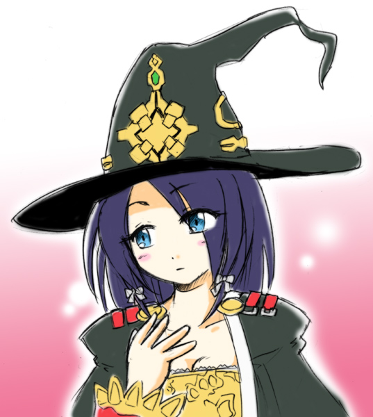 1girlblue eyesblue hairboweyes visible through hairfemale focushair bowhatmatching hair/eyespurple hairshort hairsketchsolowitch hat
