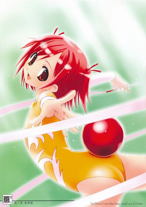 00sassballflat chestgymnasticshappyleotardopen mouthred eyesred hairrhythmic gymnasticsribbonribbon batonshort hairsmilesolotwintails