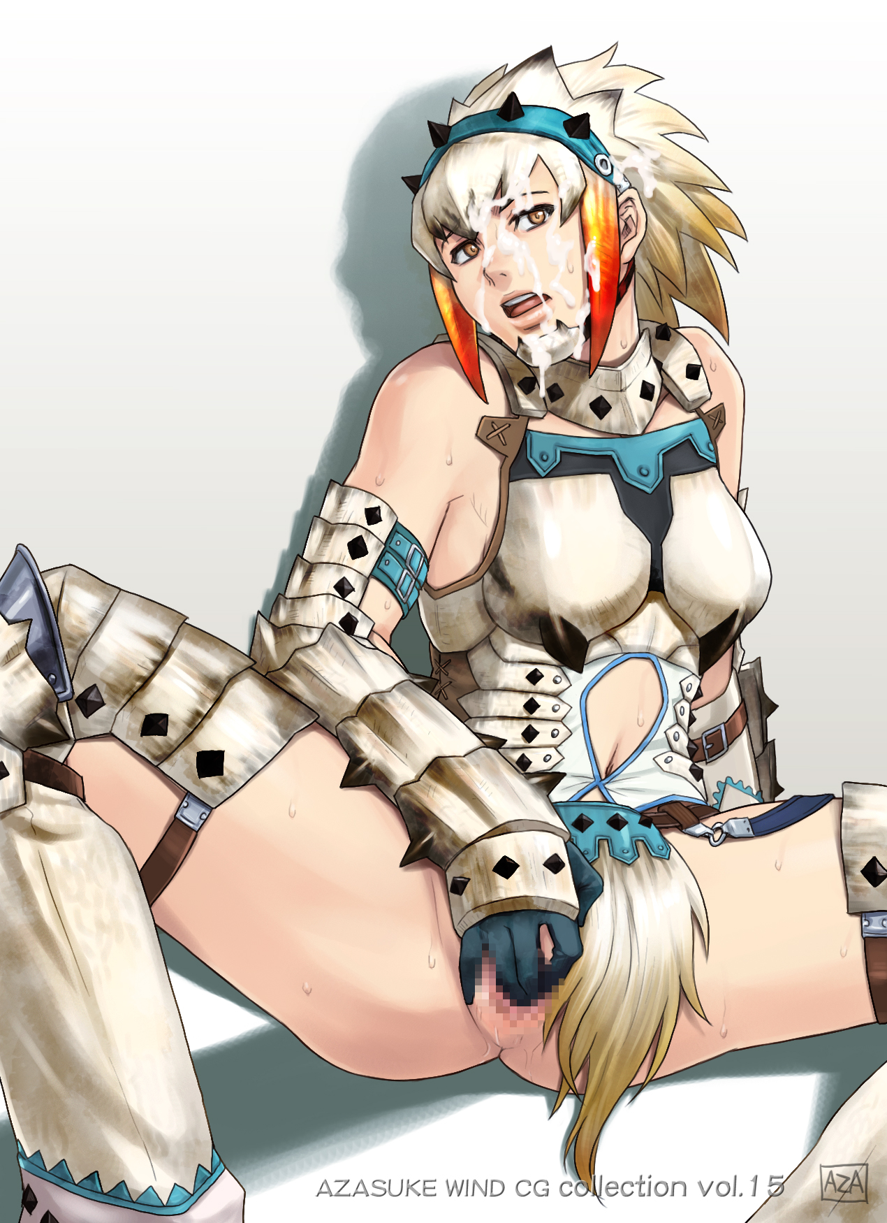 armorbare shouldersbreastsbrown eyesscumcum on hairfacialfemaleFlag for Deletionlooking at viewermasturbationmulticolored hairopen mouthpussyshort hairsittingsolospread legssweat