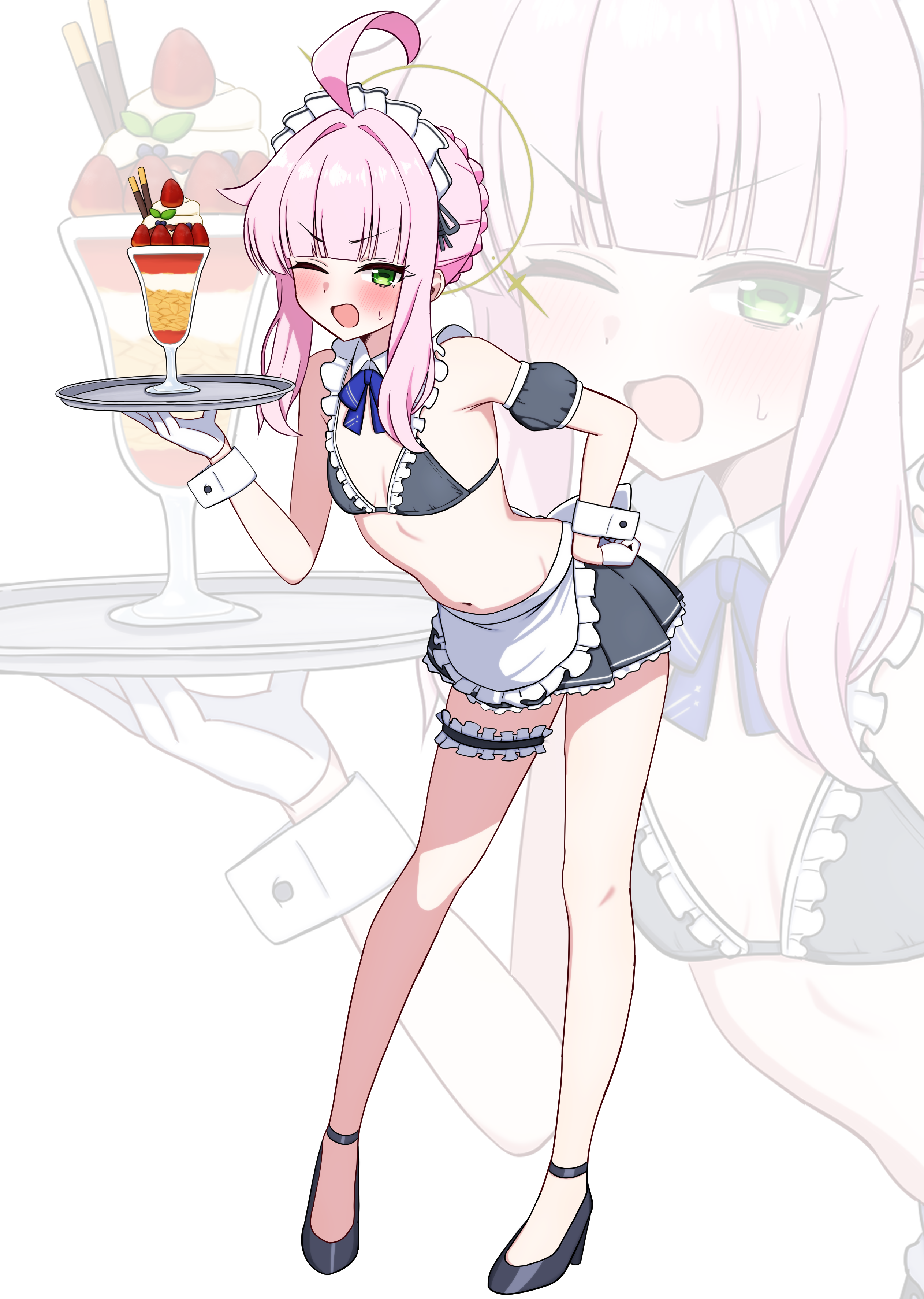 1girlahogealternate costumeapronbikinibikini skirtblack bikiniblack skirtblushbraidbraided bunflat chestfrilled apronfrilled bikinifrilled skirtfrilled thigh strapfrillsglovesgreen eyeshair bunhigh heelsholdingholding trayhorizontal pupilslong hairmaidmaid apronmaid bikinimaid headdressminiskirtnavelone eye closedpink hairpleated skirtsidelocksskirtswimsuitthigh straptrayunconventional maidwaist apronwhite apronwhite gloveswhite wrist cuffswrist cuffszoom layer