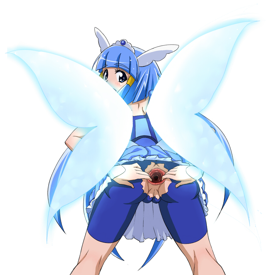 huuapainter, kotonoha akane, kotonoha aoi, voiceroid, absurdres, highres, translated, 1girl, blue hair, doyagao, glowstick, hachimaki, headband, holding, holding glowstick, long hair, penlight (glowstick), red eyes, siscon, smug, solo, thighhighs, white background