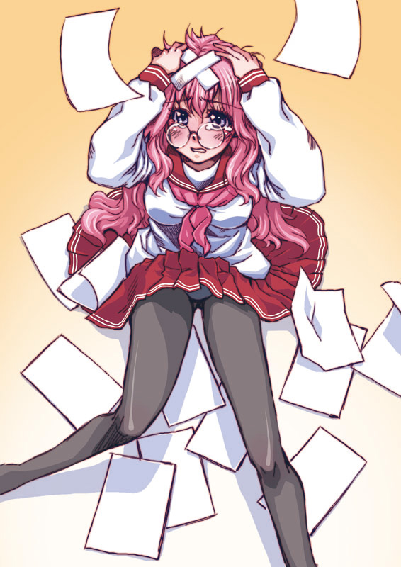 00s1girlfemale focusglassespantiespanties under pantyhosepantyhosepink hairschool uniformserafukusolounderwear