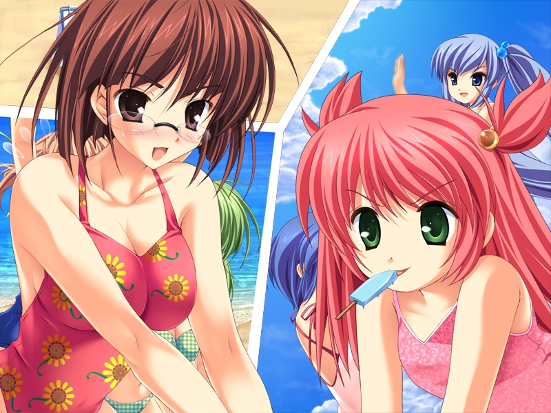 brown eyesbrown hairfoodglassesgreen eyeslong hairone-piece swimsuitpopsiclered hairshort hairswimsuit
