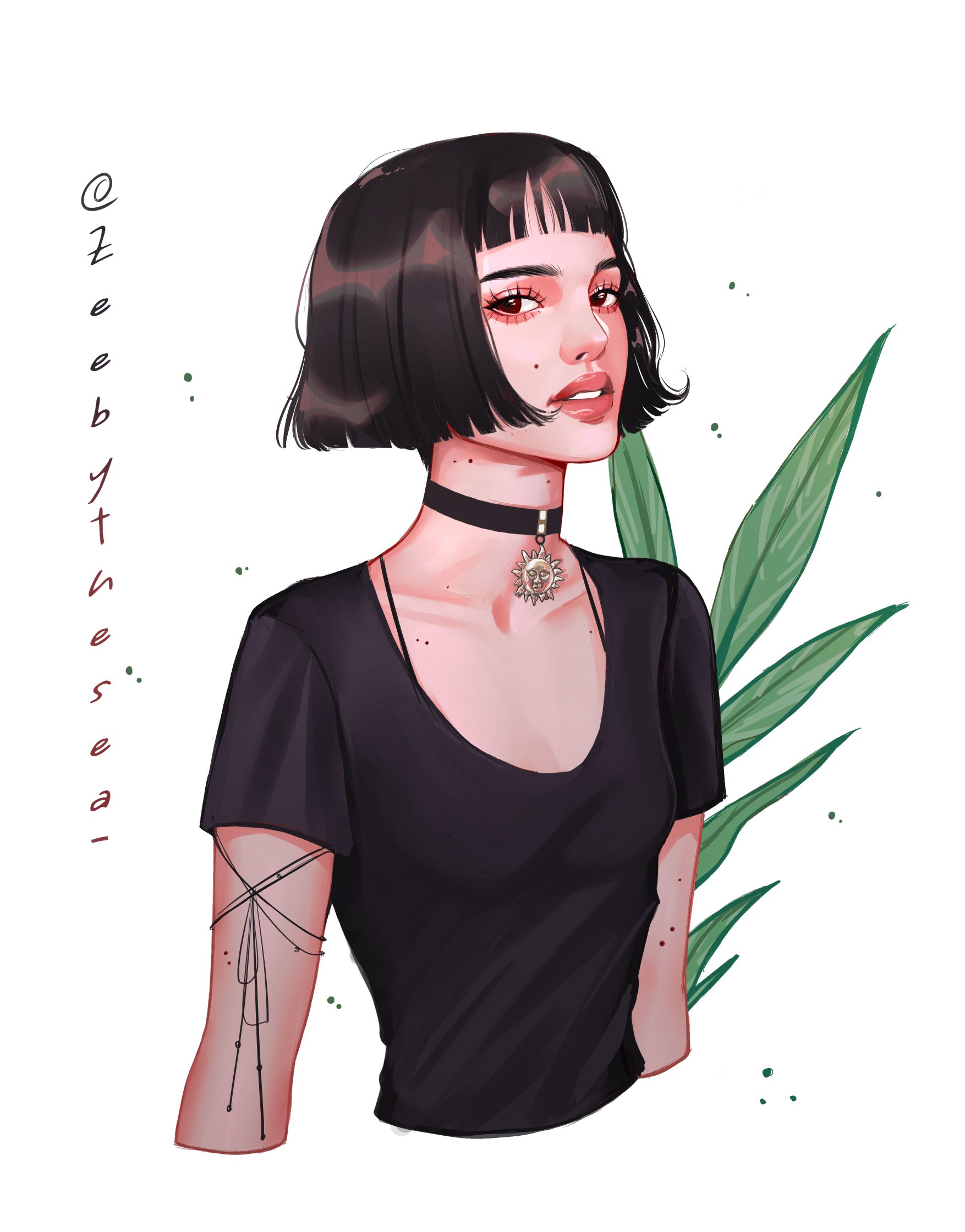 1girlblack chokerblack shirtbob cutbrown hairchokercollarbonecropped torsoeyelashesleaflight particleslooking at viewermolemole on armmole on cheekmole on collarbonemole on neckparted lipspendant chokershirtshort bangsshort hairt-shirtthick eyebrowsthick lipstwitter usernameupper body