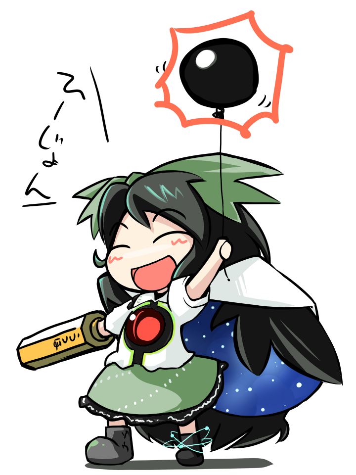 1girlballoonblushbowcapechibifemale focushair ribbonlong hairopen mouthribbonskirtsolovery long hairwings