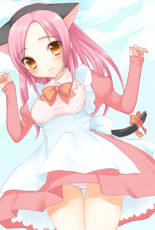 hira-san, izayoi sakuya, touhou, absurdres, highres, 1girl, apron, ass, between fingers, black panties, black thighhighs, blush, frilled apron, frills, grey hair, holding, holding knife, knife, knives between fingers, lace, lace-trimmed panties, lace trim, looking at viewer, maid, maid apron, maid headdress, panties, panty peek, profile, puffy short sleeves, puffy sleeves, short sleeves, sideways glance, solo, thighhighs, underwear, white apron