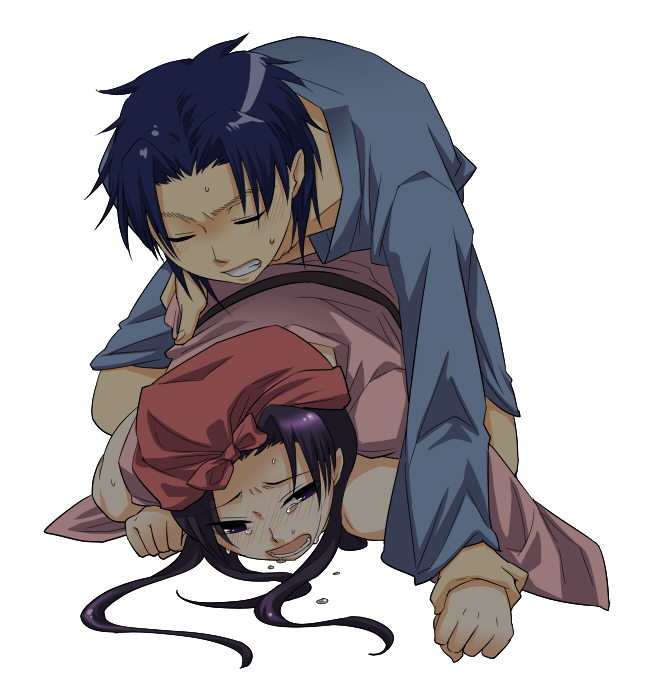 2boysanalbandanablue hairblushclothed sexcoupleforeshorteningholding another's wristjapanese clothesmale focusmale penetratedmultiple boyspurple hairrapesexsex from behindsimple backgroundtearstrapwhite backgroundyaoi