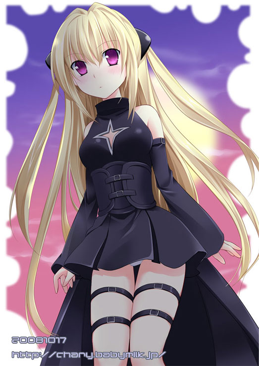 00s1girlbare shouldersblonde hairbreastscleavage cutoutclothing cutoutdetached sleevesdressfemale focuslong hairmoonoutdoorspantiespantyshotpink eyesskysolostrapthigh gapthigh strapthighsturtlenecktwintailstwo side upunderwearvery long hairwhite panties