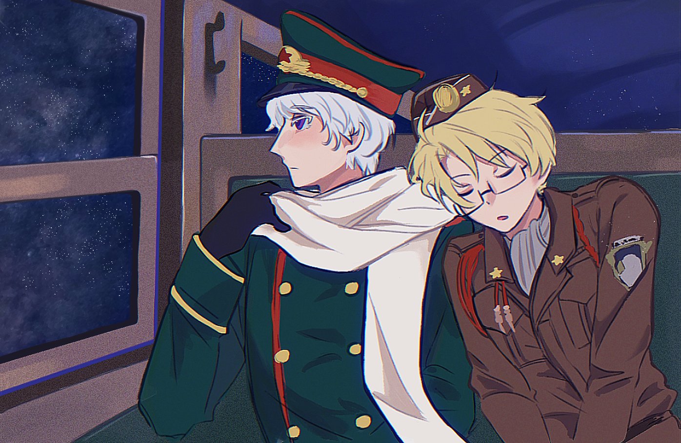 2boysahogeblack glovesblack-framed eyewearblonde hairblue skybreast pocketbrown hatbrown jacketbuttonsclosed eyesclosed mouthemblemglassesglovesgreen hatgreen jackethand uphathat ornamentindoorsjacketlapelsleaning on personlong sleeveslooking to the sidelovelovejusumale focusmilitary hatmilitary jacketmilitary uniformmultiple boysnightnight skyopen mouthpocketpurple eyesscarfsemi-rimless eyewearshort hairsittingskysleepingstar (sky)star (symbol)star hat ornamentstar ornamentstarry skywhite hairwhite scarfwindowyaoi