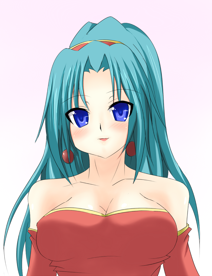 1990s (style)1girlbare shouldersblushbreastsearringsfemale focusgradient backgroundjewelryretro artstylesolo