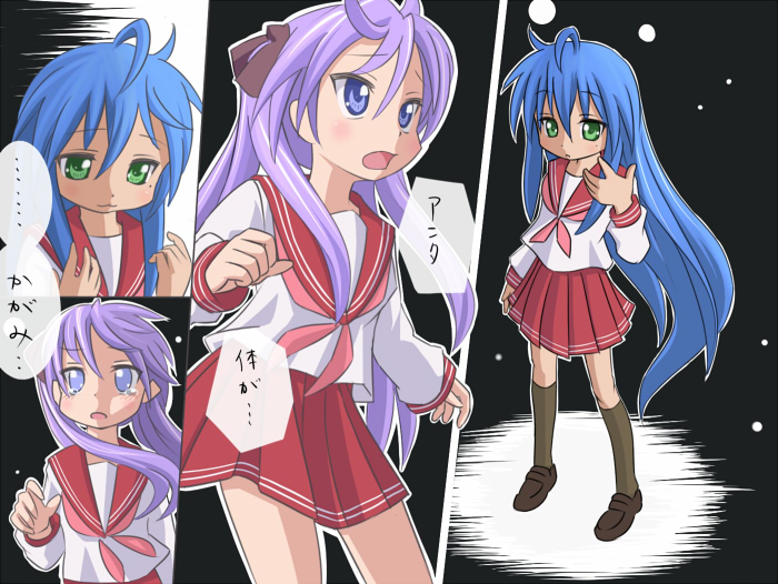 :300s2girlsahogeblue eyesblue hairblushbowcomicgreen eyeslong hairmolemole under eyemultiple girlsopen mouthpurple hairribbonschool uniformserafukushort twintailsstar (symbol)tearstwintailsvery long hairyuri