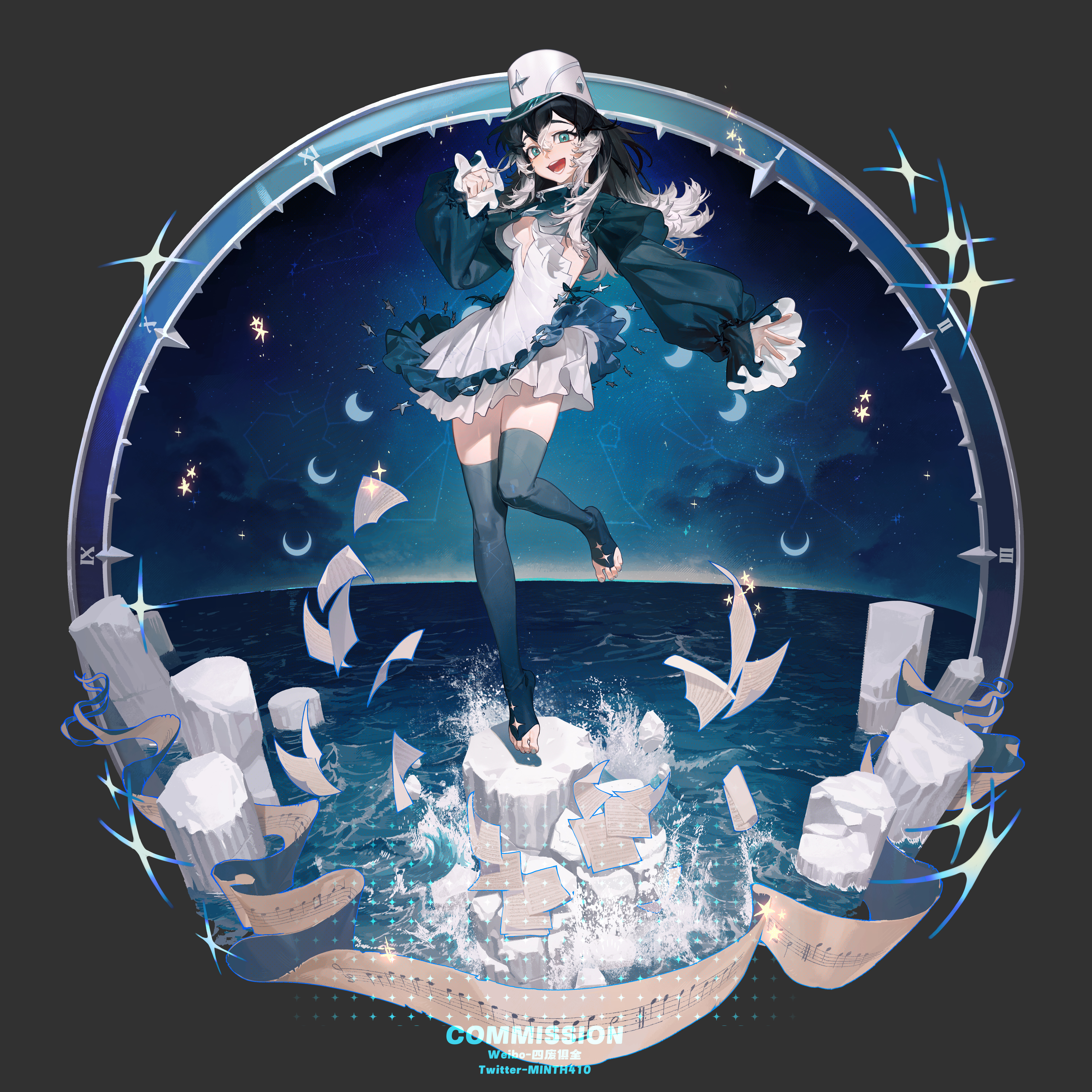 1girlaqua eyesaqua nailsaqua thighhighsbeamed eighth notesblack hairbridal legwearbroken pillarcancer (constellation)capricorn (constellation)constellationconstellation printdresseighth notefaux figurinefloatingflying papergemini (constellation)grey hairgrey nailshair between eyeshalf notehatleo (constellation)long hairlong sleeveslooking at viewermoon phasesmulticolored hairmusical notemusical staffnail polishnightnight skyno shoesoceanopen mouthpaperpeaked cappisces (constellation)puffy long sleevespuffy sleevesquarter noteroman numeralsagittarius (constellation)shako capsheet musicskysolostar (sky)taurus (constellation)thighhighstoe scrunchtoenail polishtoenailstoestwitter usernametwo-tone dressvirgo (constellation)wavesweibo usernamewhite hairzettai ryouiki