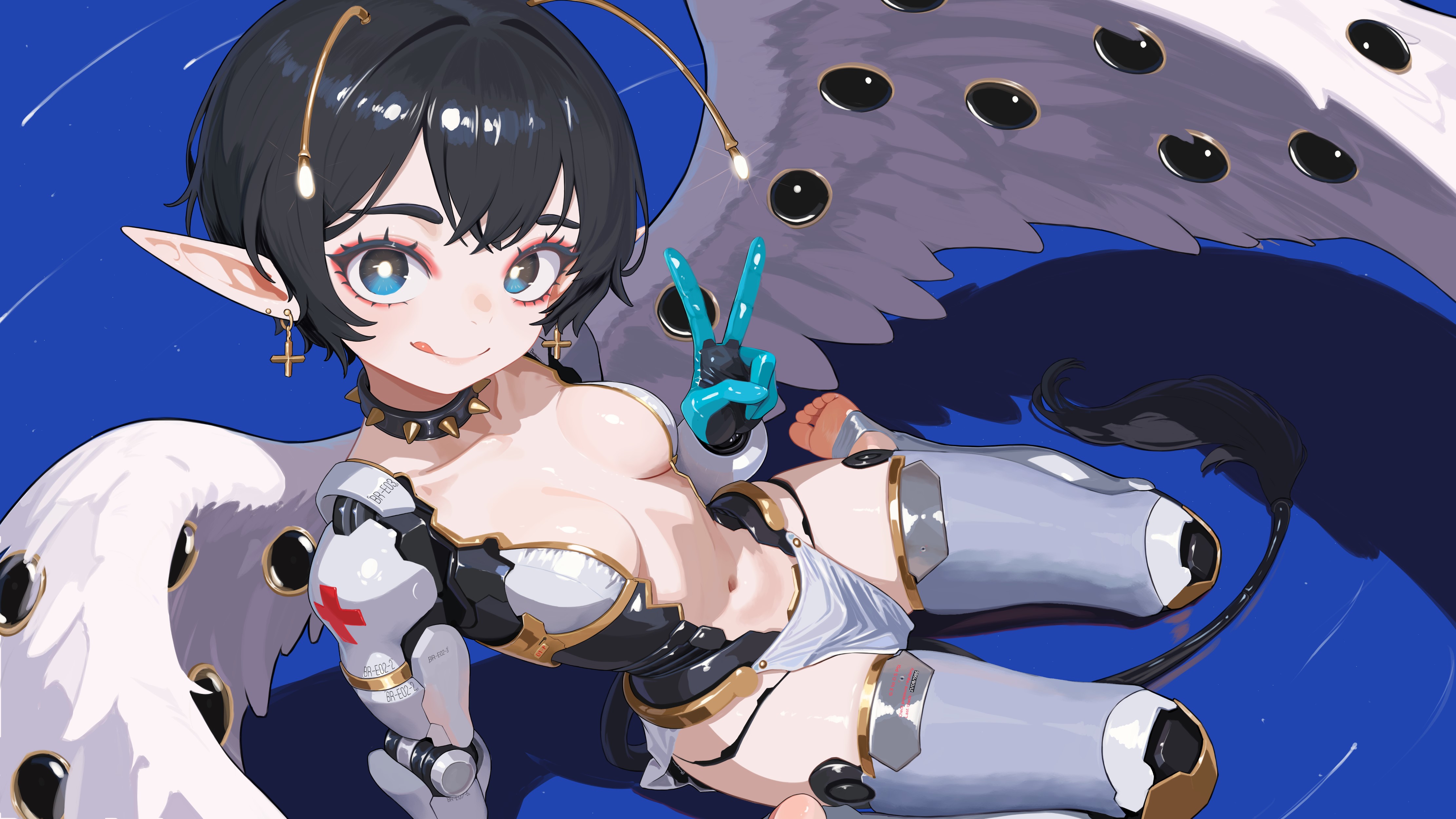 ubekeyk, gold ship (umamusume), scout (peak), semibot, worker (lethal company), content warning (game), lethal company, peak (game), r.e.p.o., umamusume, absurdres, commentary, english commentary, highres, 1girl, animal ears, artist name, battery, blush, chromatic aberration, convenience store, crossover, grey hair, hat, horse ears, horse girl, indoors, jitome, monitor, multiple crossover, multiple others, no pupils, refrigerator, shelf, shop, standing, twitter username