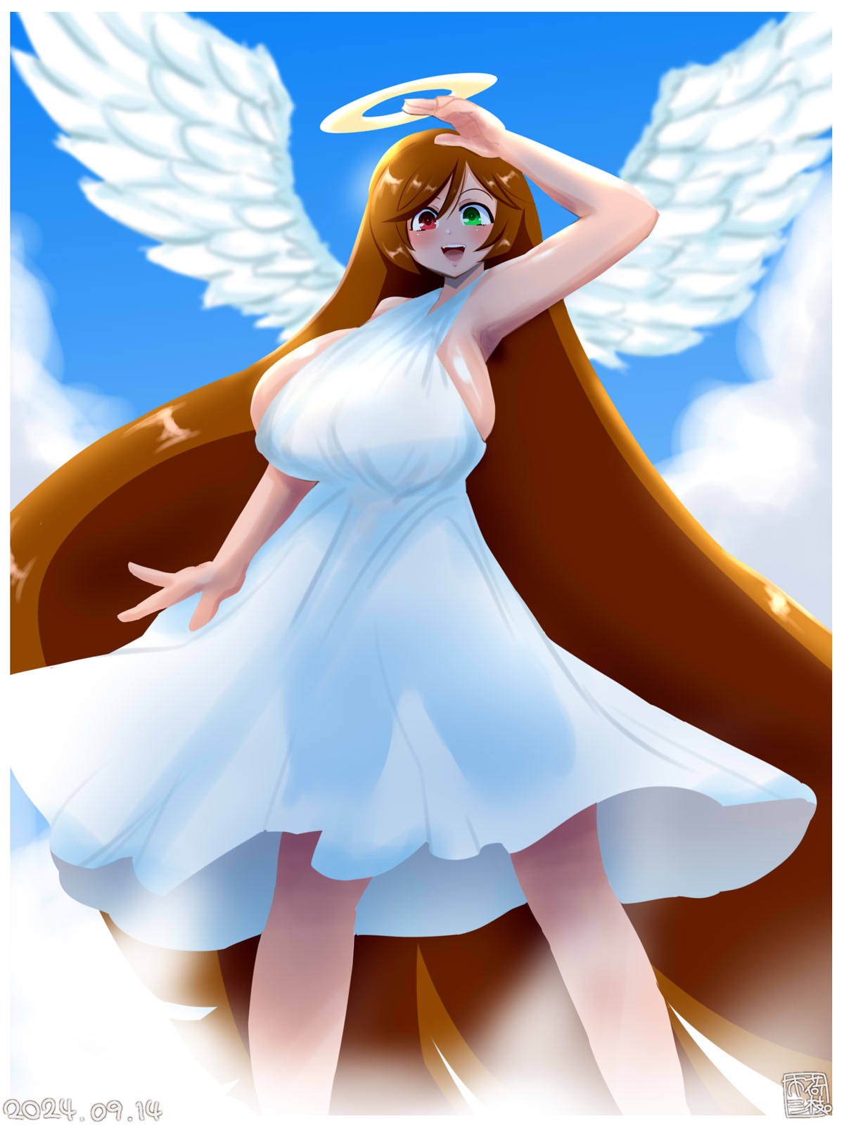 niwaikanai, matou sakura, fate/stay night, fate (series), heaven's feel, translation request, 1girl, breasts, crown, dress, grin, hair ribbon, large breasts, long hair, looking at viewer, mini crown, purple eyes, purple hair, ribbon, short sleeves, smile, solo, white dress