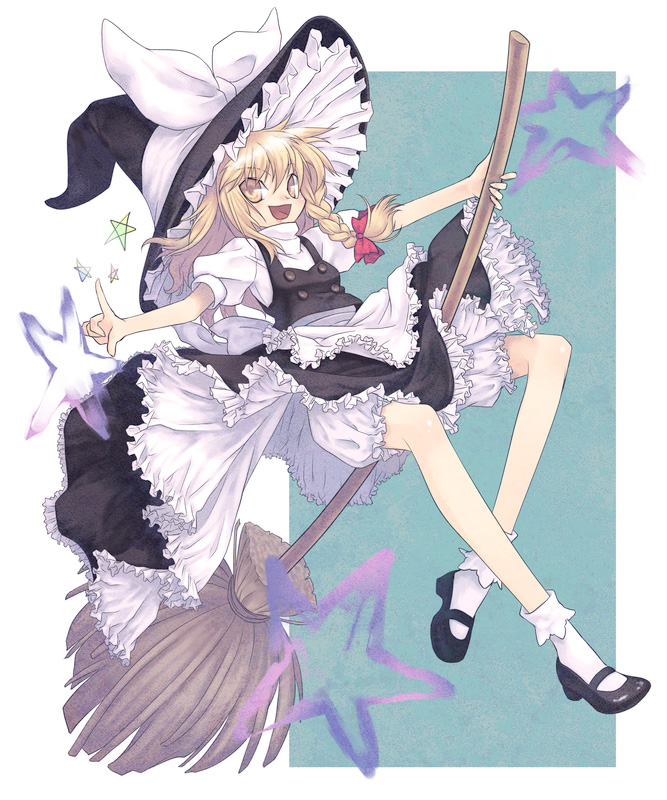 high priest (ragnarok online), ragnarok online, commentary request, 1girl, alternate color, artist name, blonde hair, blue dress, breasts, brown eyes, cigarette, copyright name, cowboy shot, dress, grin, juliet sleeves, long hair, long sleeves, looking at viewer, medium breasts, puffy sleeves, sash, simple background, smile, solo, thighhighs, two-tone dress, white background, white dress, white sash, white thighhighs, yotuha428