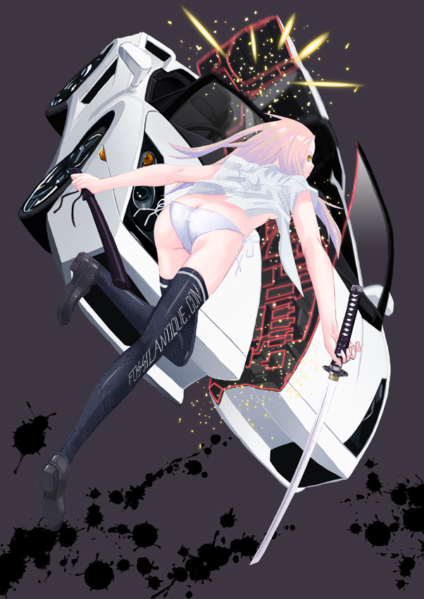 asscarkatanalamborghini gallardolegsmotor vehiclepantiespink hairside-tie pantiessoloswordthighhighsunderwearweaponyellow eyes