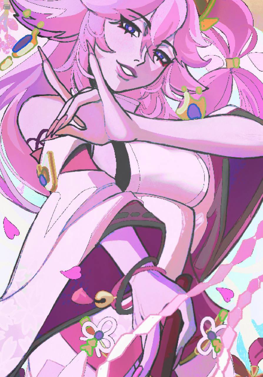 1girlanimal earscowboydancingdetached sleeveseyeshadowfalling petalsfingernailsfox earsfox girlfox shadow puppetjunowasdeadlong fingernailslong hairlooking at viewermakeupnontraditional mikoopen mouthpetalspink hairpink lipspink nailspink pupilspurple eyesred eyeshadowsoloteethupper bodywesternwide sleeves